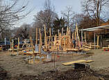 Im Oktober haben die Bauarbeiten für den neuen Kletterspielplatz im Uferpark begonnen. Inzwischen wurde die Holzkonstruktion, die die Form eines Seedrachens nachahmt, fertiggestellt. Auch der Fallschutz wurde eingebaut, dieser ist auch mit einem Rollstuhl befahrbar. In den nächsten Wochen folgen der Wasserspielbereich und die weiteren Arbeiten rund um das Spielgerät.